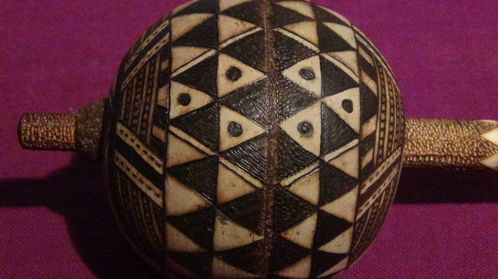 Afternoon: Engraving of the round body of the maraca