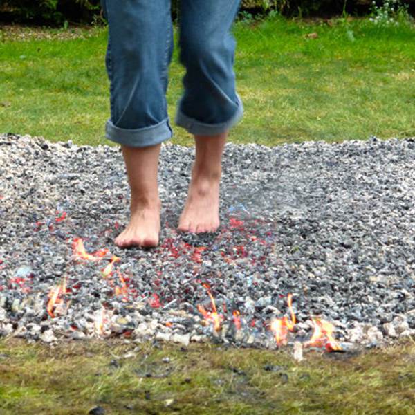 Tijdens de dag krijg je alle mogelijke handvaten en tools aangereikt om s ’avonds over het vuur te wandelen.